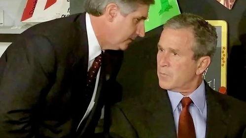 让我们先来回顾一下那段视频。那天,布什正在佛罗里达州的一所小学参观,突然,他接到了关于纽约恐怖袭击的电话。视频中,布什的表情从惊讶转为严肃,他立刻意识到事态的严重性。在短暂的沉默后,他告诉在场的师生:“我要去白宫了,你们要照顾好自己。”